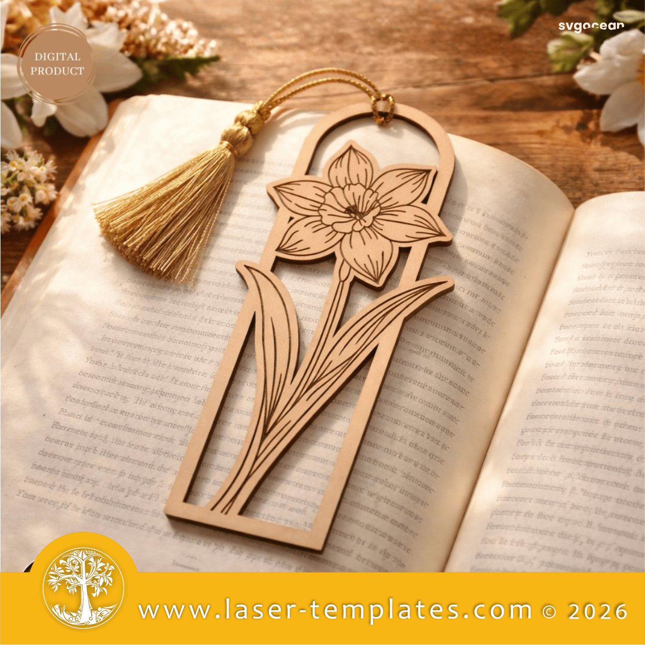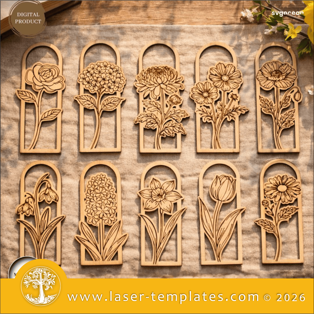 Laser cut and engrave template design for floral bookmarks.
