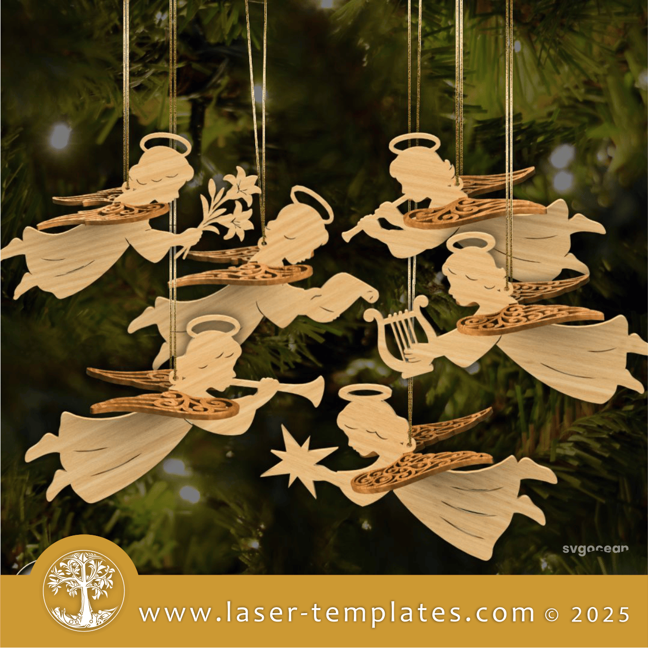 Laser cut template design for 3D Angels Ornament Bundle.