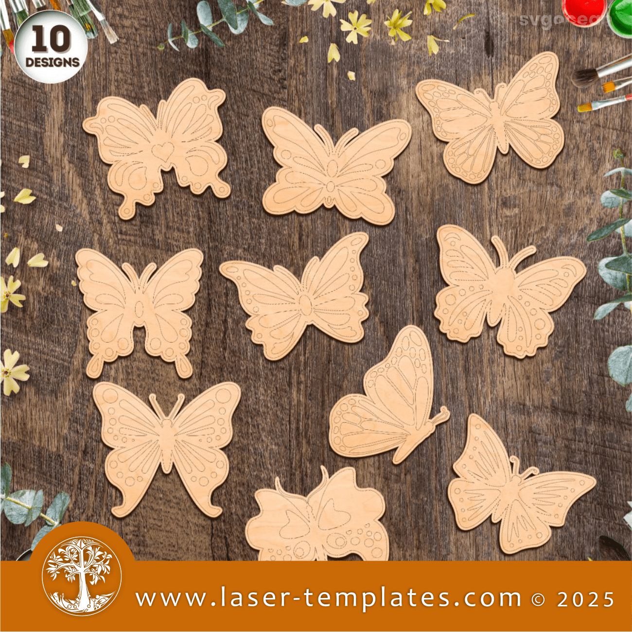 Laser cut and engrave template design for butterflies. Perfect for painting, arts and crafts.
