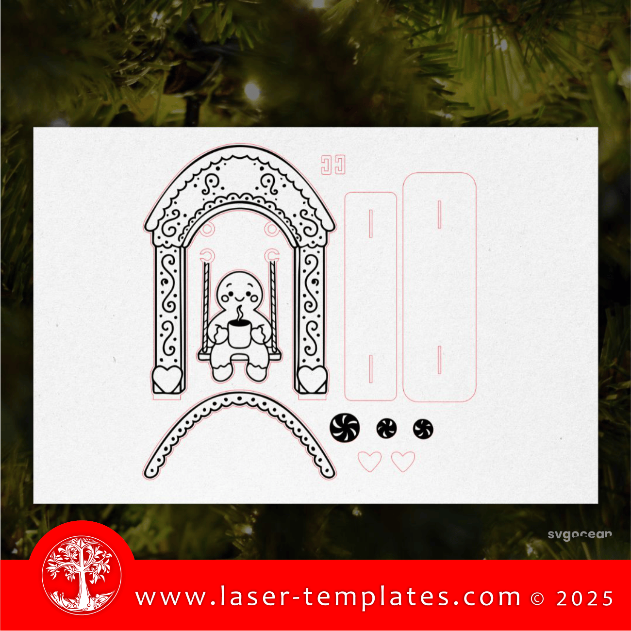 Laser cut template design for layered Gingerbread Man on Swing with stand.