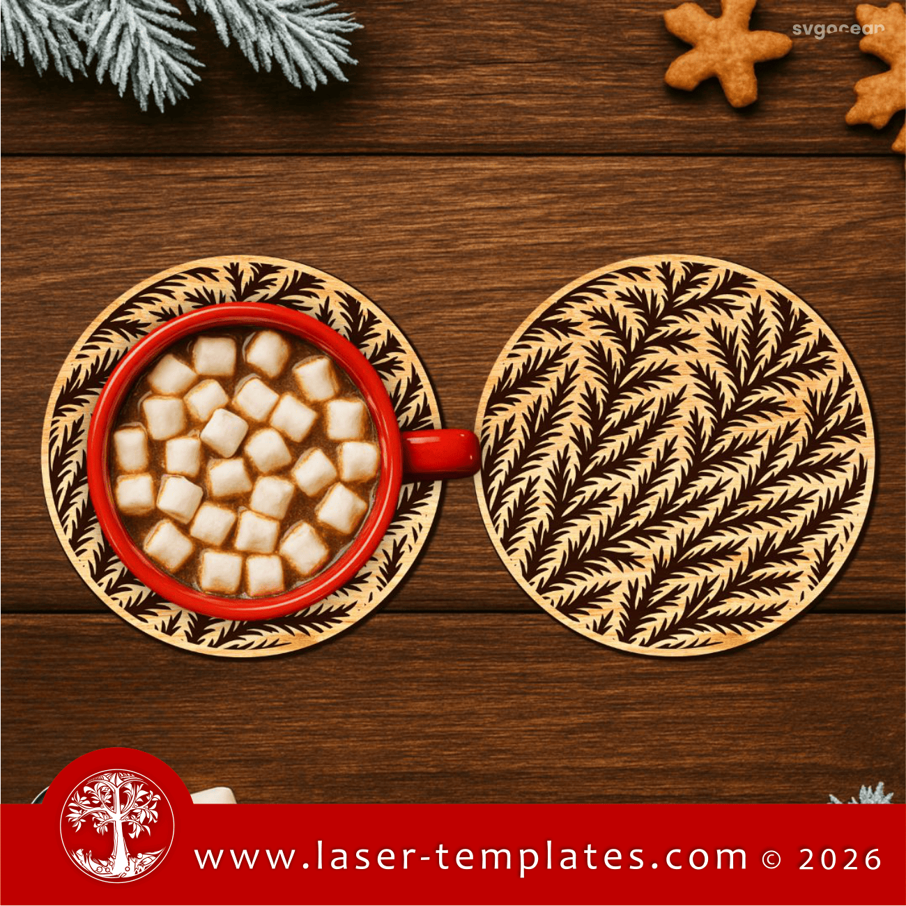 Engrave template design for leaf pattern coasters