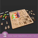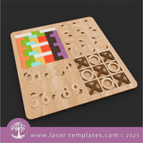 Laser cut template for a multi board game, Tetris, Puzzles, Tic Tac Toe and Numbers.