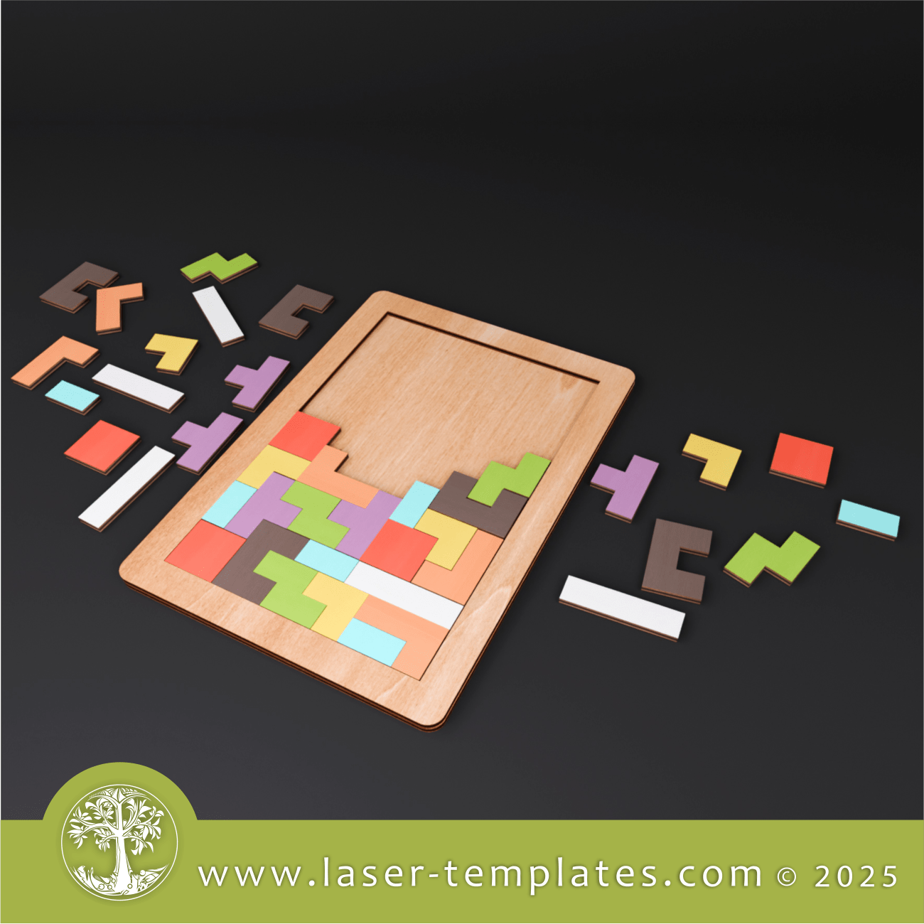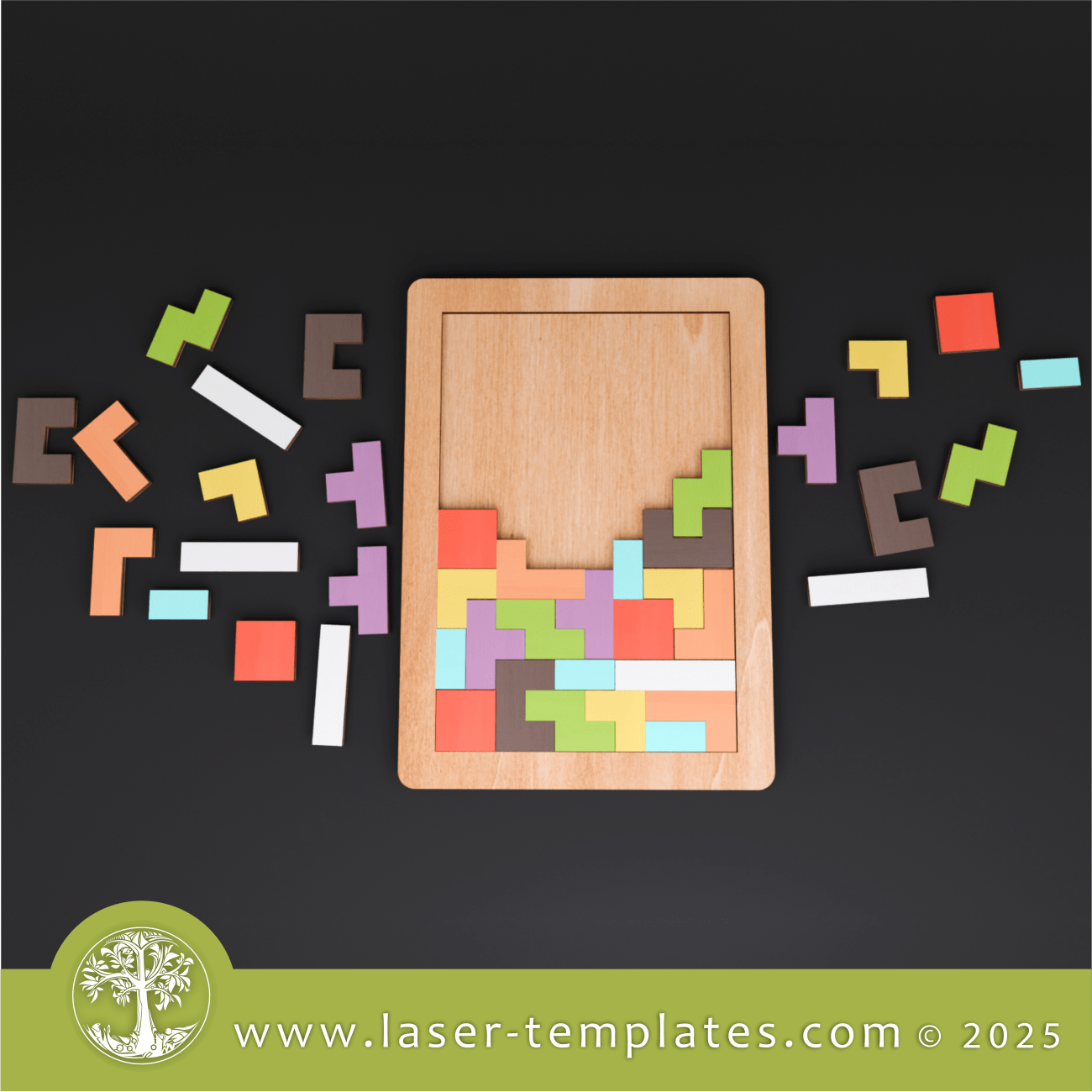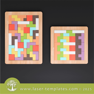 Laser cut template for Tetris Puzzle Game. This game is great fun and the perfect little gift for both adults and kids or even a corporate giveaway.