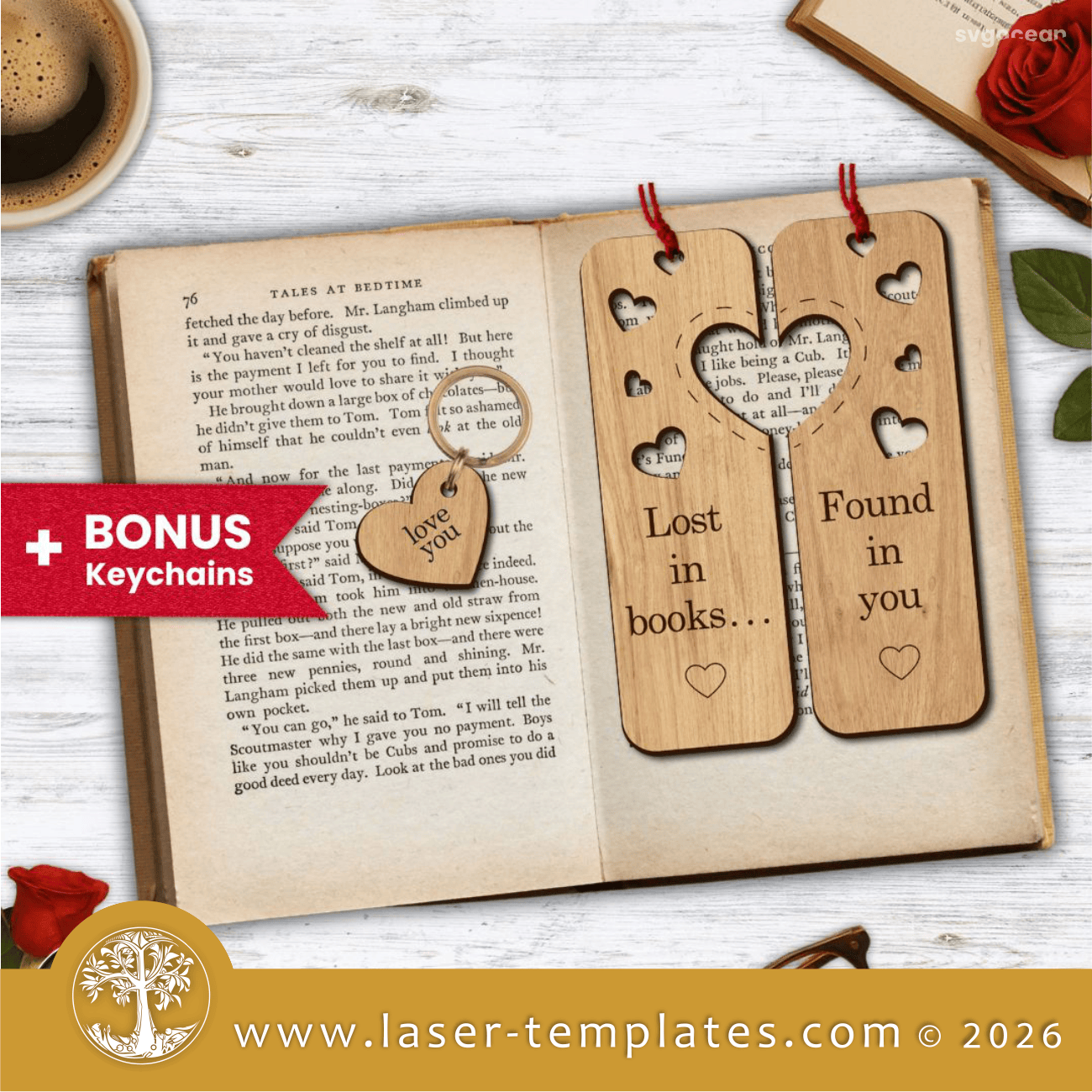 Laser cut template design for couple bookmarks