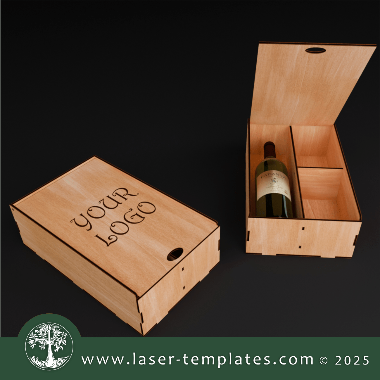 Laser cut template for gift box, perfect to personalize as a gift and can hold a wine bottle and glasses.