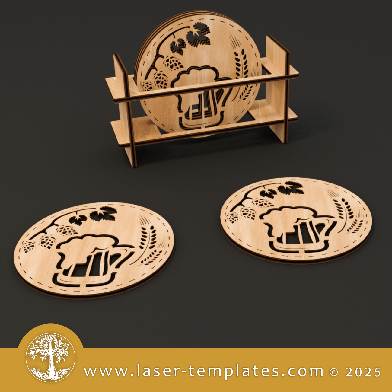 Laser cut template for beer coasters with holder.