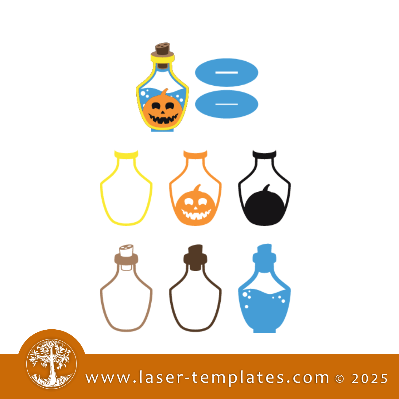 Laser cut template design for 6 layered potion bottle with stand. Perfect for Halloween.